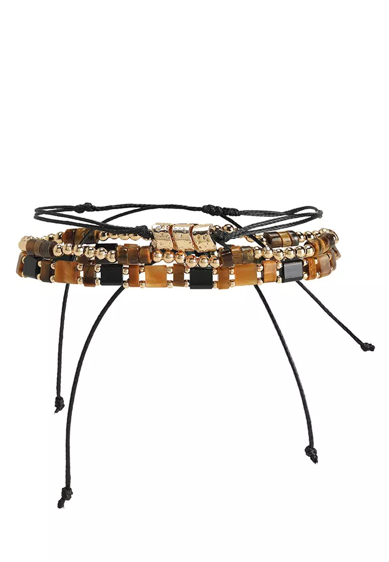 50% Tiger Eye, 15% Steel, 10% Jasper, 10% Acrylic, 10% Cotton, 5% Brass