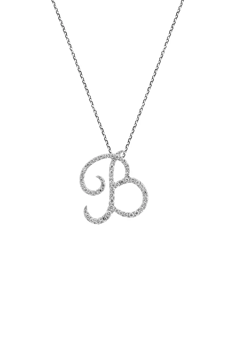 Pavé Lab Grown Diamond 'B' Initial Pendant in White Gold D/E-VVS/VS (0.36ct TDW) with chain