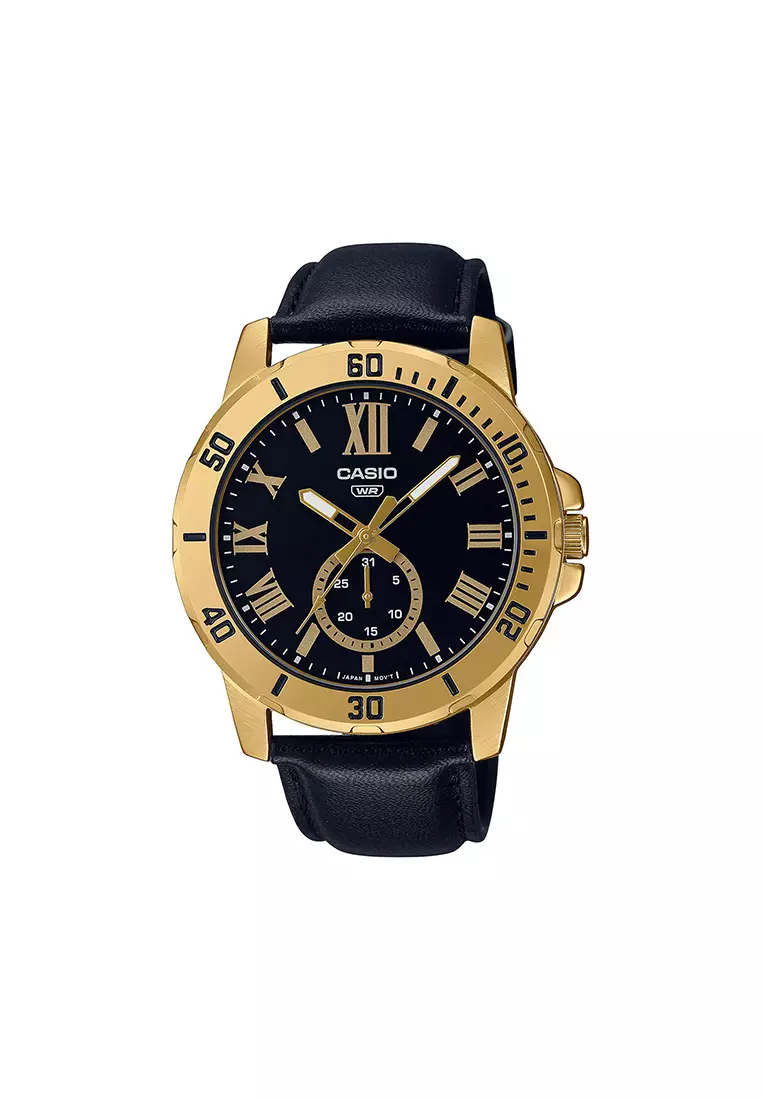 CASIOMen's Analog Watch MTP-VD200GL-1B Gold tone with Black Leather Band Watch for men1079.00480.90