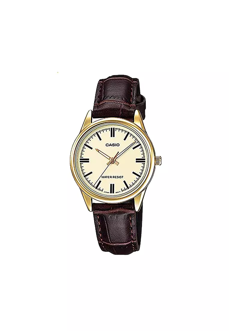 Women's Analog LTP-V005GL-9A Gold Tone Case Leather Watch