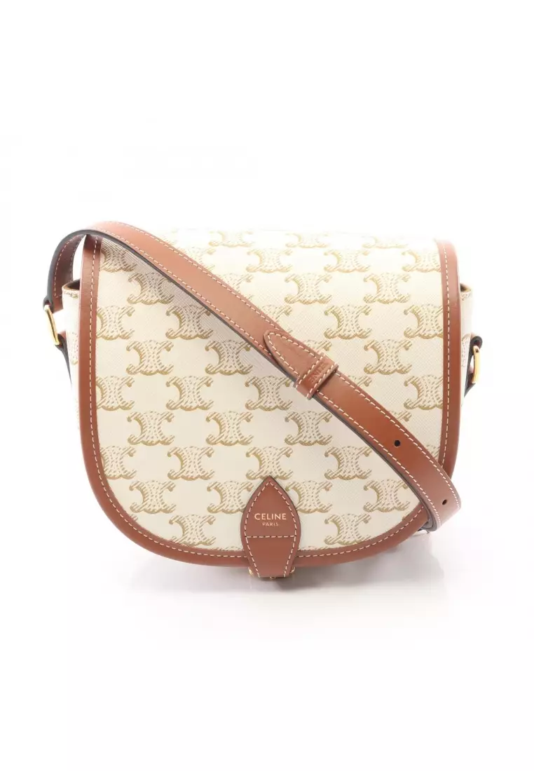 CelinePre-Loved Celine Folco medium bag Triomphe Shoulder bag PVC leather white Brown15391.00