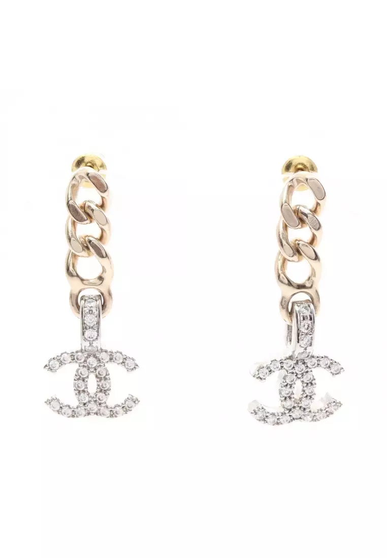 Pre-Loved Chanel coco mark earrings GP Rhinestone gold Silver clear B22S