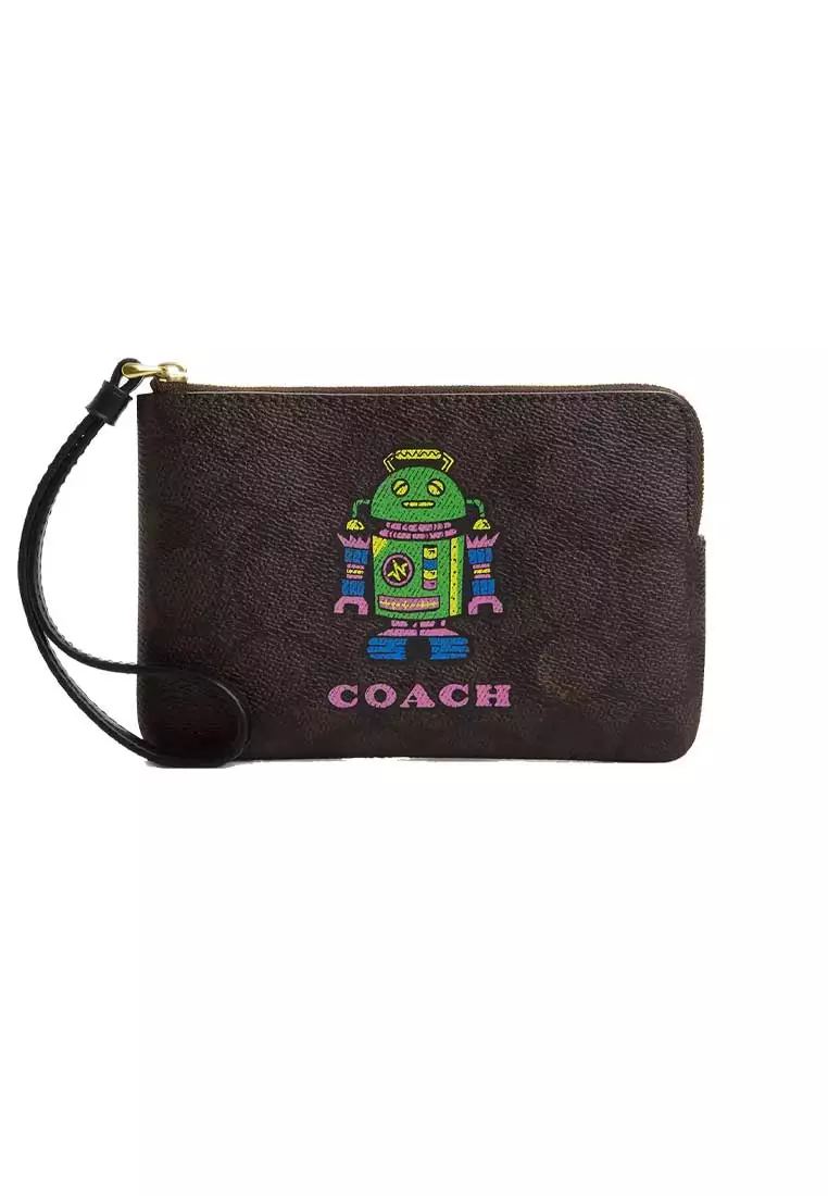 Corner Zip Wristlet In Signature Canvas With Robot Print CW868