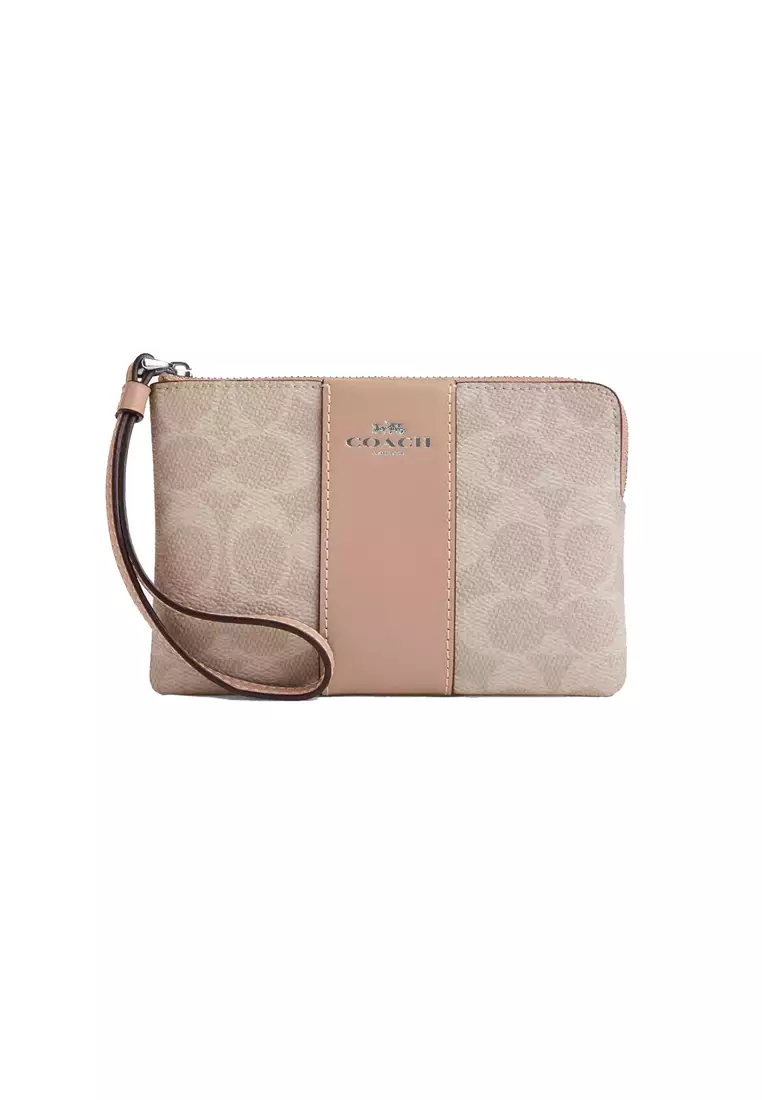 CoachCorner Zip Wristlet In Signature Canvas With Stripe Sand/Taupe CW8541228.00697.58