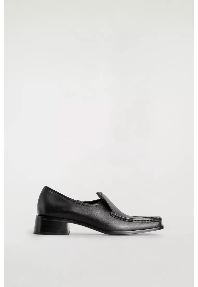 SQUARE-TOE LEATHER HEELED LOAFERS