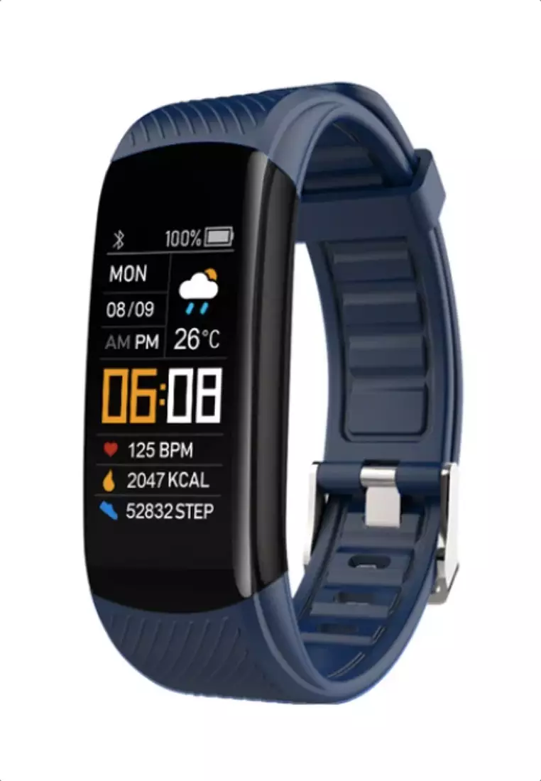 Unisex IOS/Android IP Black Waterproof Fitness SmartWatch, Heart Rate Monitoring, Weather, Clock, with Navy Blue Rubber Strap