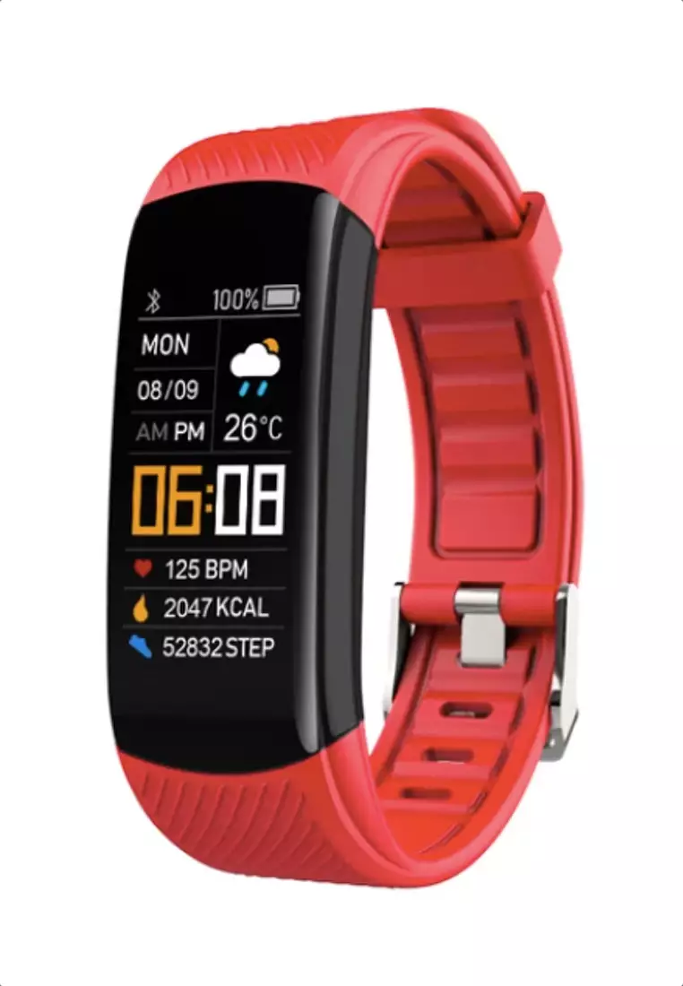 EGLANTINEUnisex IOS/Android IP Black Waterproof Fitness SmartWatch, Heart Rate Monitoring, Weather, Clock, with Red Rubber Strap999.00299.00