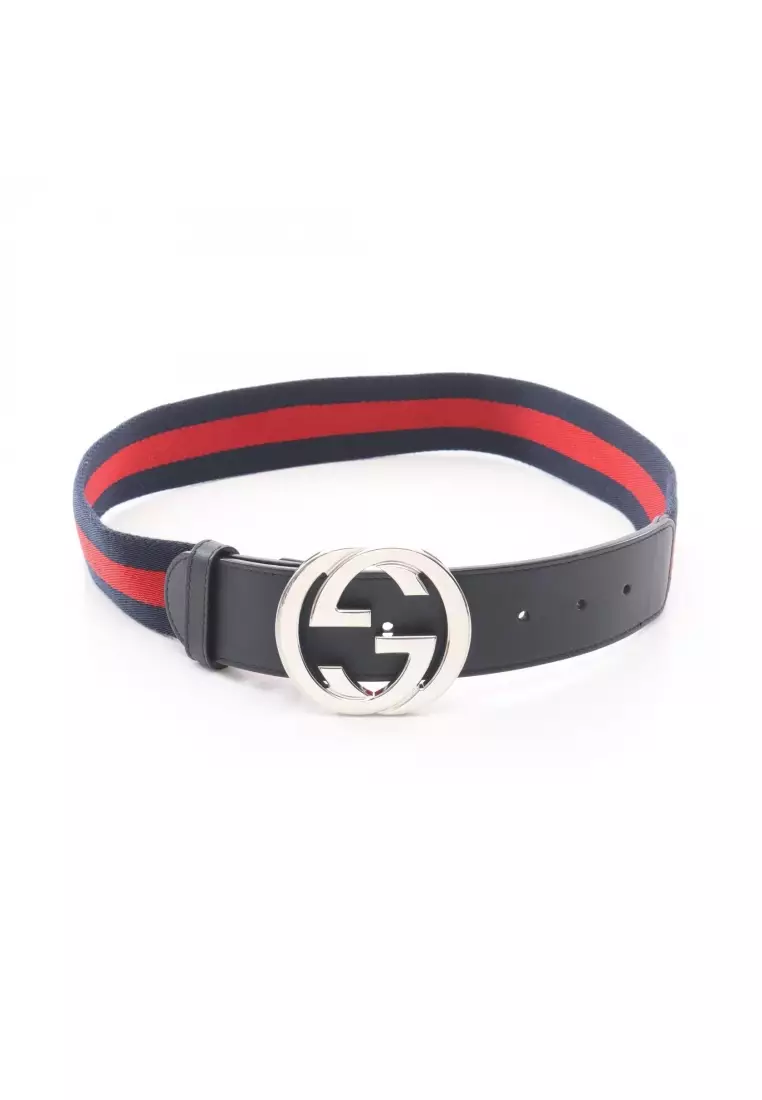 GucciPre-Loved Gucci Interlocking G sherry line belt fabric leather Navy Red black1998.00