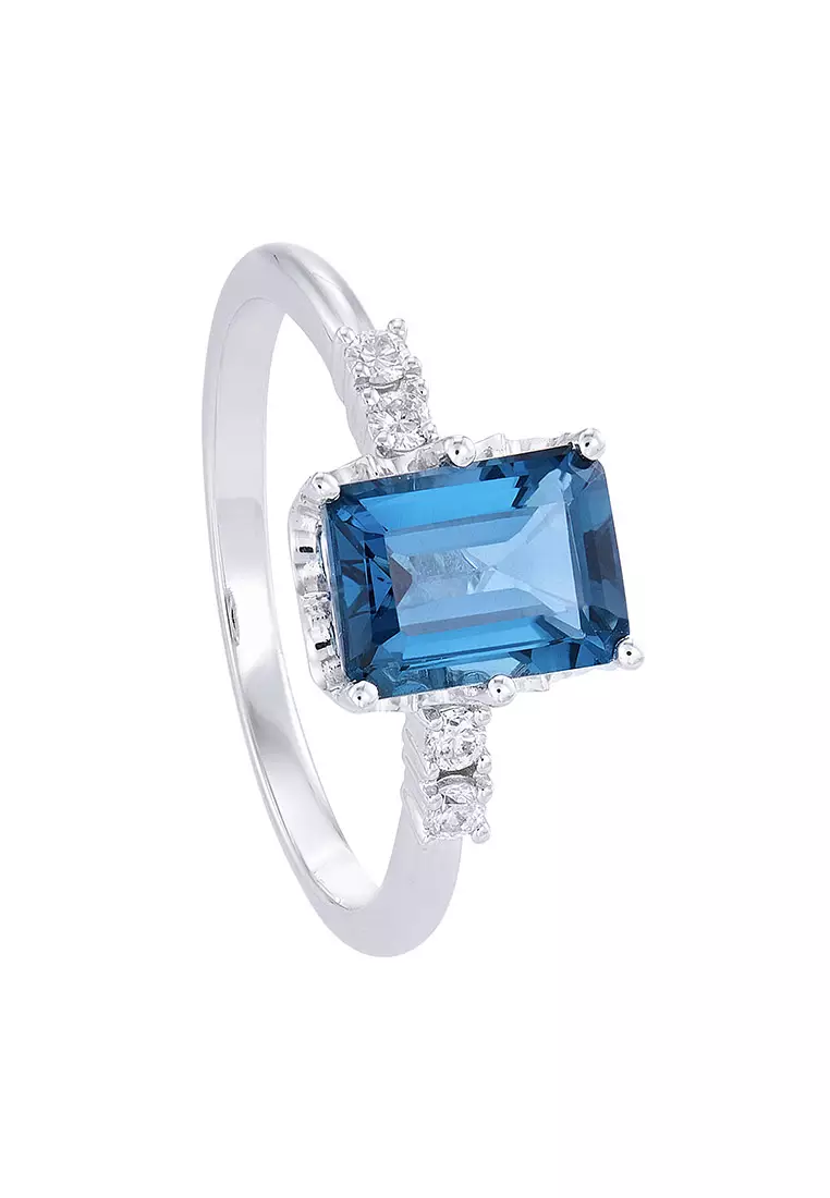 HABIBHABIB Emerald Cut Blue Topaz and Diamond Ring in 375/9K White Gold 265461222(WG)-BTOPZ5655.004810.00