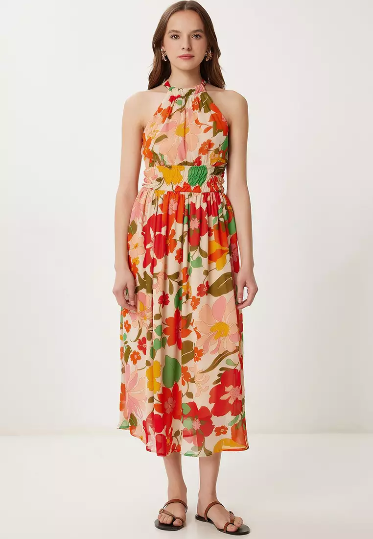 Happiness IstanbulWomen's Orange Pink Patterned Flounced Midi Chiffon Dress Fg00029309.00