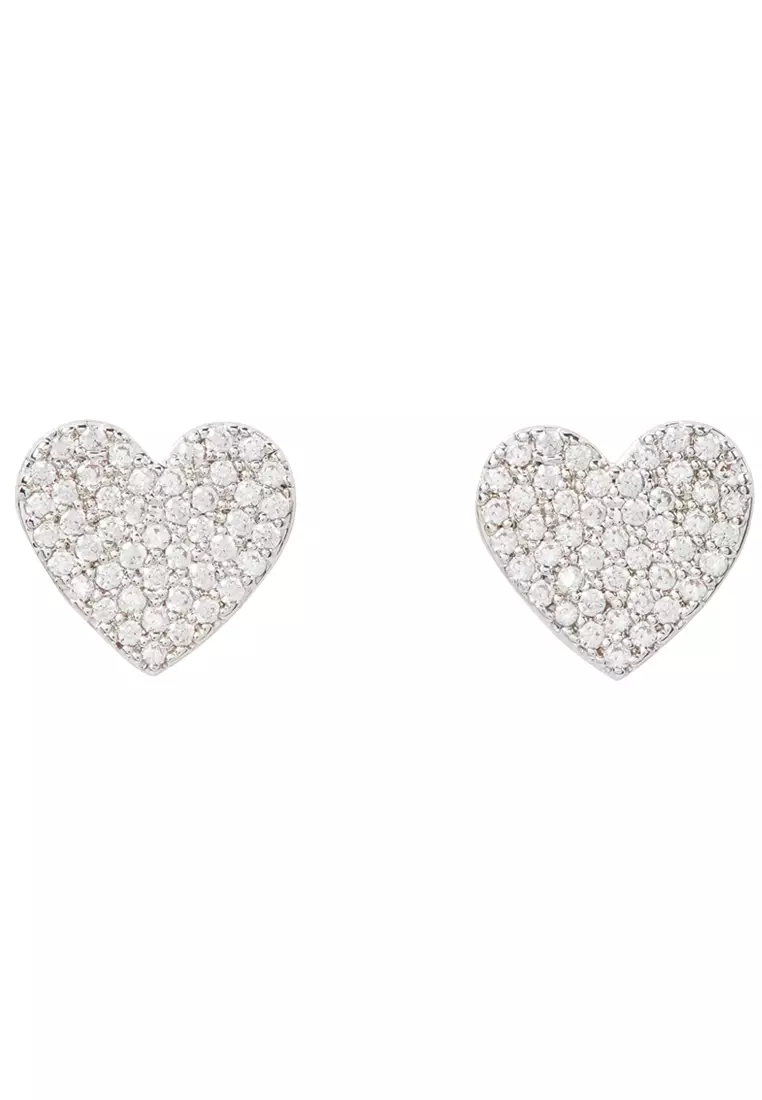 Yours Truly Pave Heart Studs Earrings - Silver O0R00154