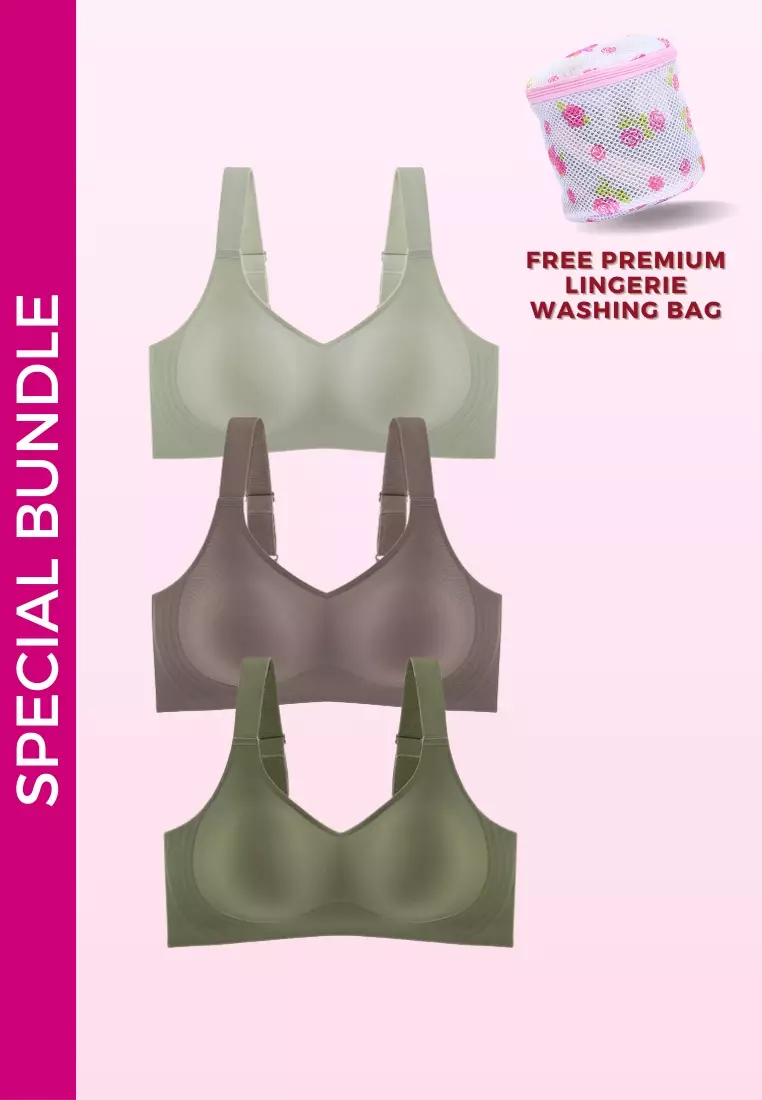 Kiss & Tell3 Pack Premium Melinda Seamless Wireless Padded Support Bra in Grey, Brown and Green1299.00999.00