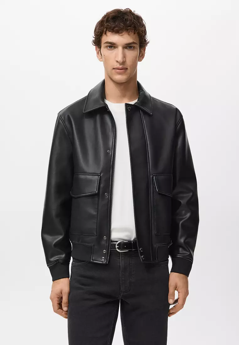 Faux-Leather Jacket with Pockets