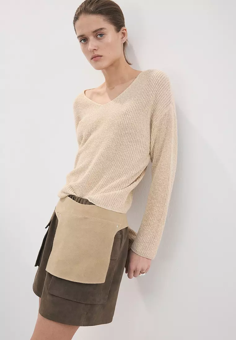 V-Neck Openwork Knitted Sweater