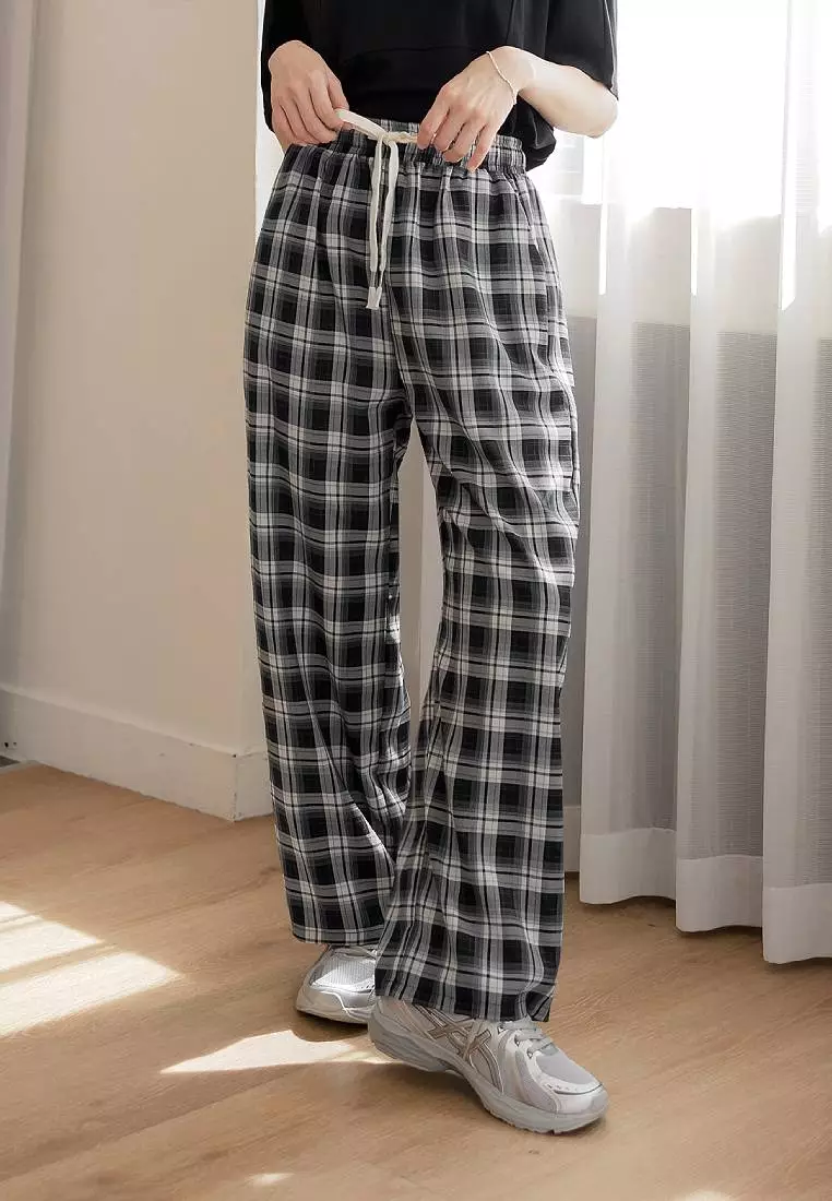 Plaid Elastic Waist Straight Wide-Leg Pants [BA7871]
