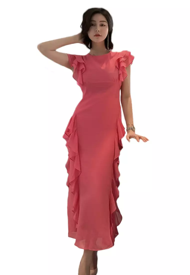Korean Style Chiffon Slim Long Fishtail One-Piece Dress A21051301RD