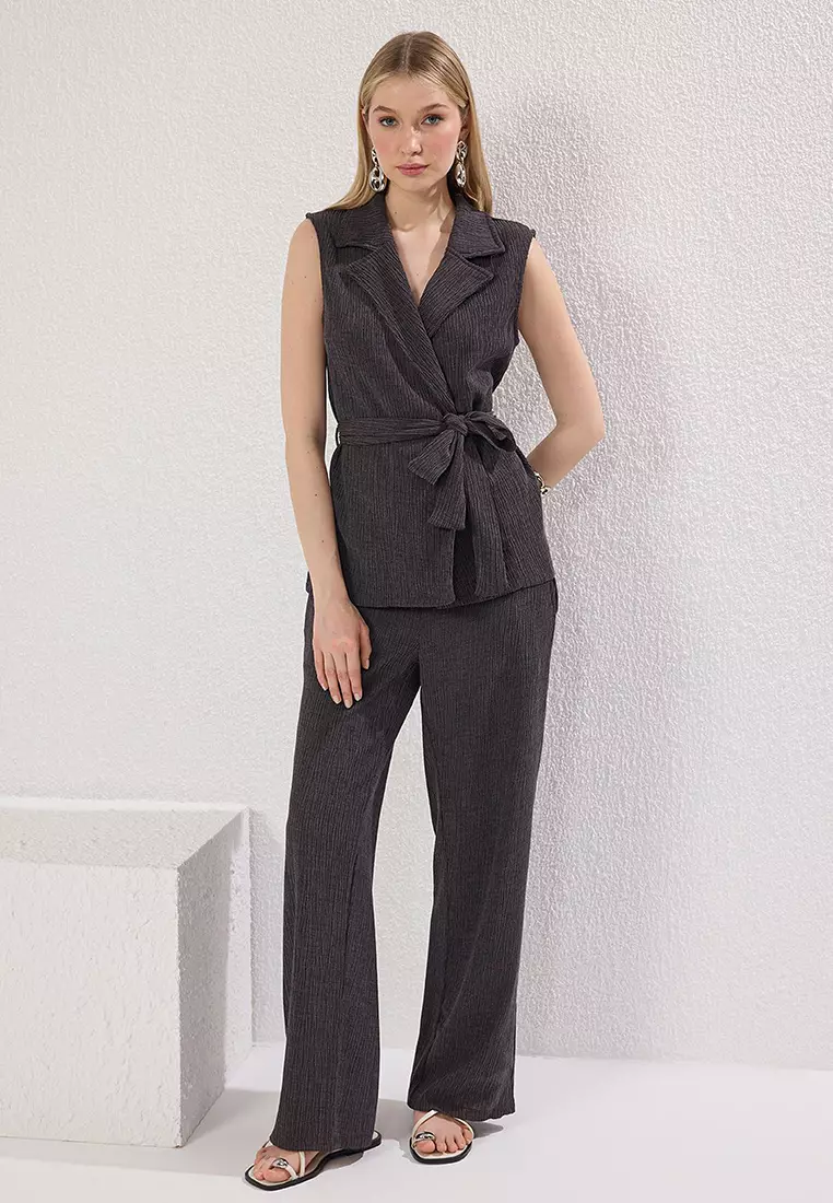 TrendyolAnthracite Double Breasted Closure Wideleg/Wide Leg Knitted Bottom-Top Set Twoss25Au00005409.00
