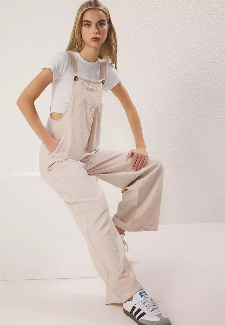 TrendyolBeige Button Detail Square Collar Wide Leg Jumpsuit Twoss21Tu0090279.00