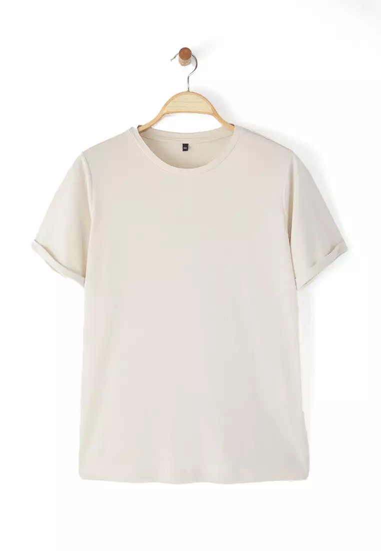 TrendyolBeige Crew Neck Modal Flowy Comfortable Plus Size T-Shirt Tbbss25Bf00054189.00