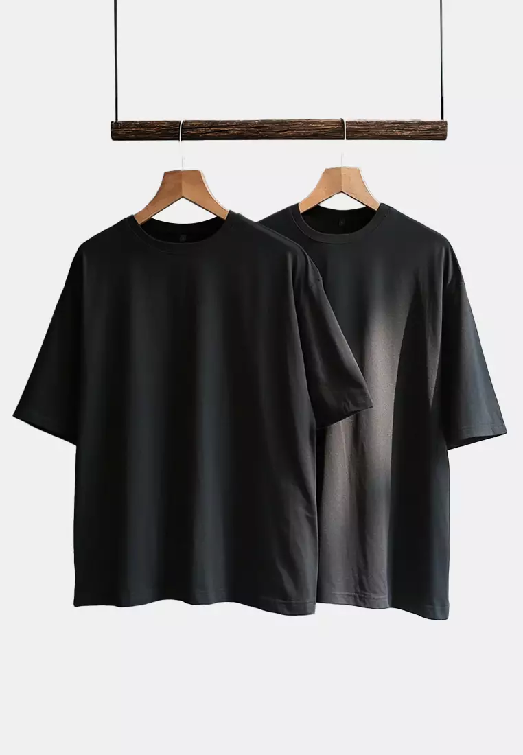 Black-Black Oversize 2 Pack Basic 100% Cotton T-Shirt TMNSS24TS00038