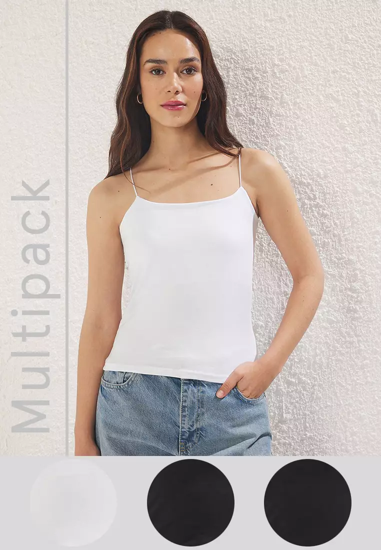 TrendyolBlack-Black-White 3-Pack Strappy Square Neck Flexible Knitted Undershirt TWOSS24AL00054149.00