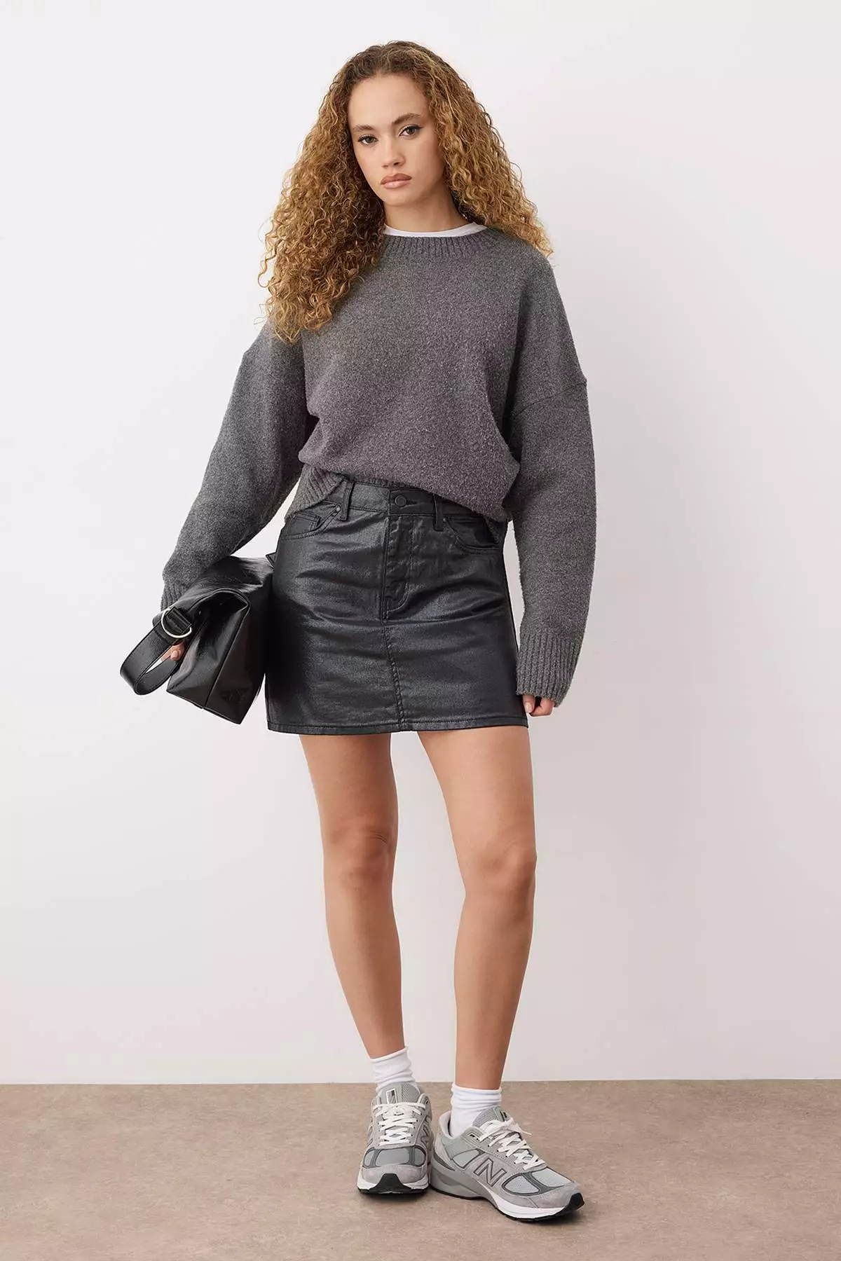 Black Coated Mini Denim Skirt