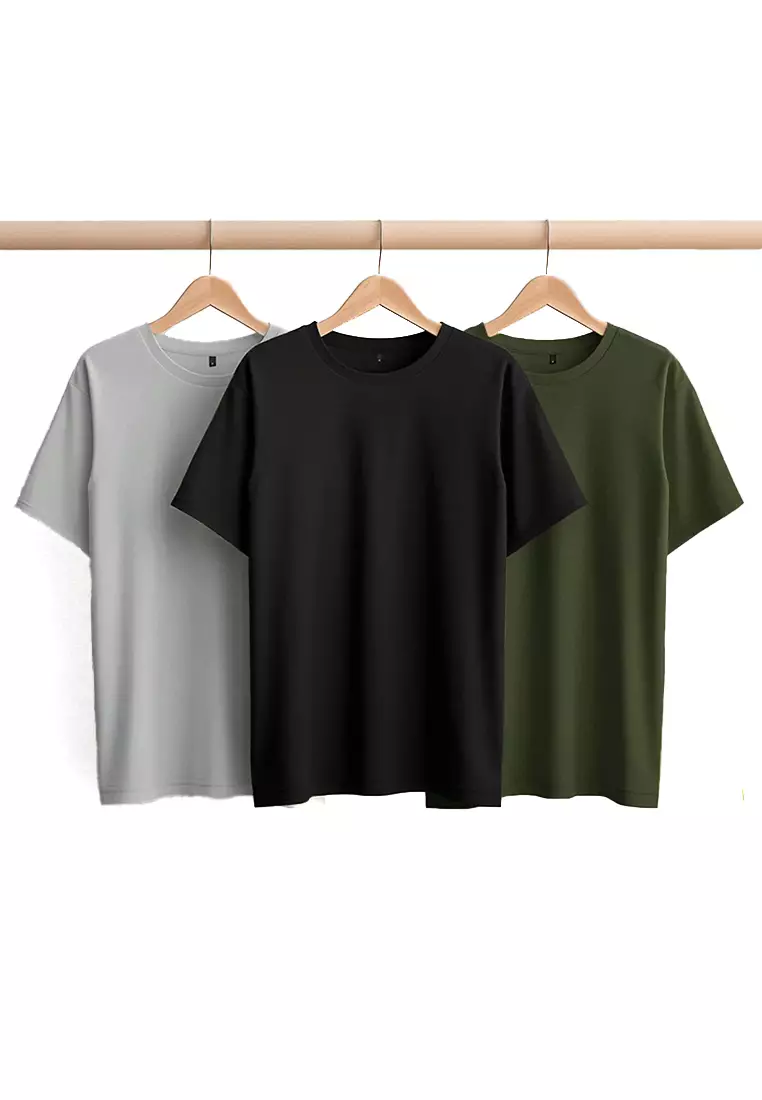 Black-Khaki-Grey 3-Pack Slim/Slim Cut Basic 100% Cotton T-Shirt Tmnss19Bo0007