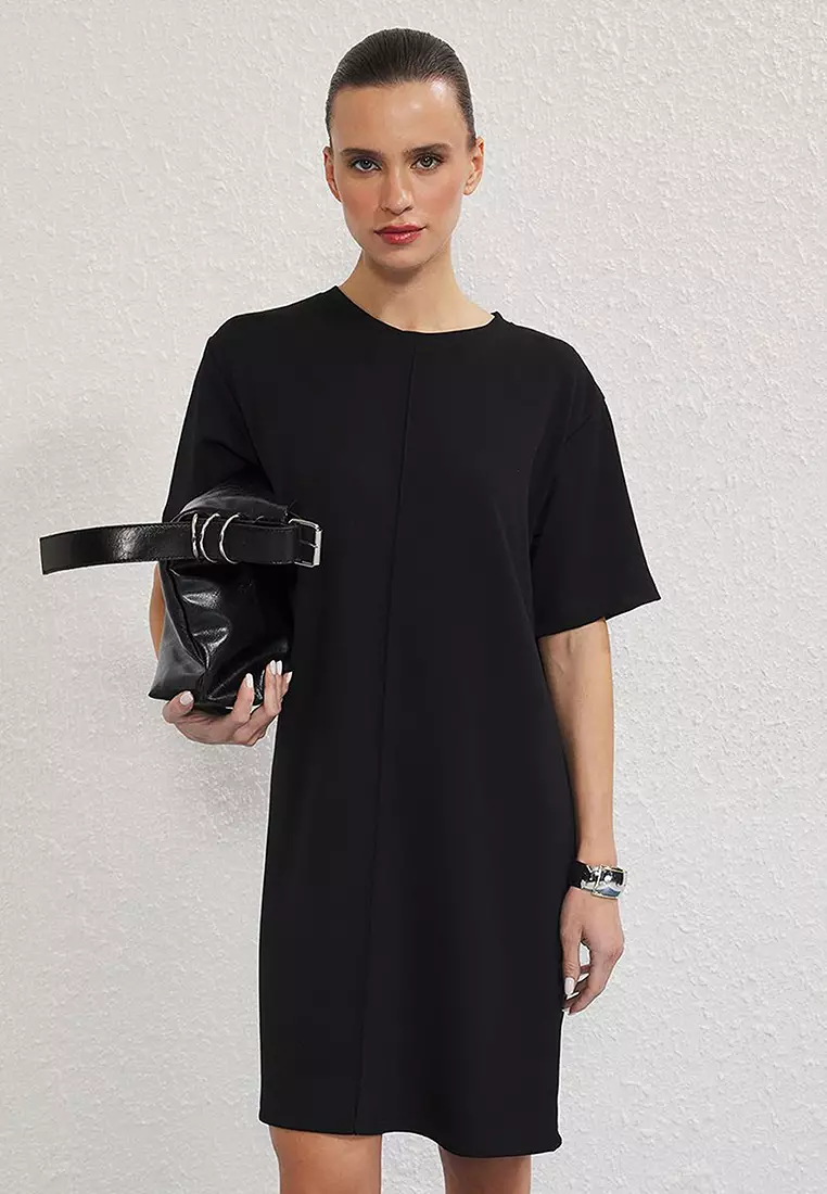 Black Soft Ribbed Shift/Straight Cut Mini Knit Dress TWOSS25EL00778