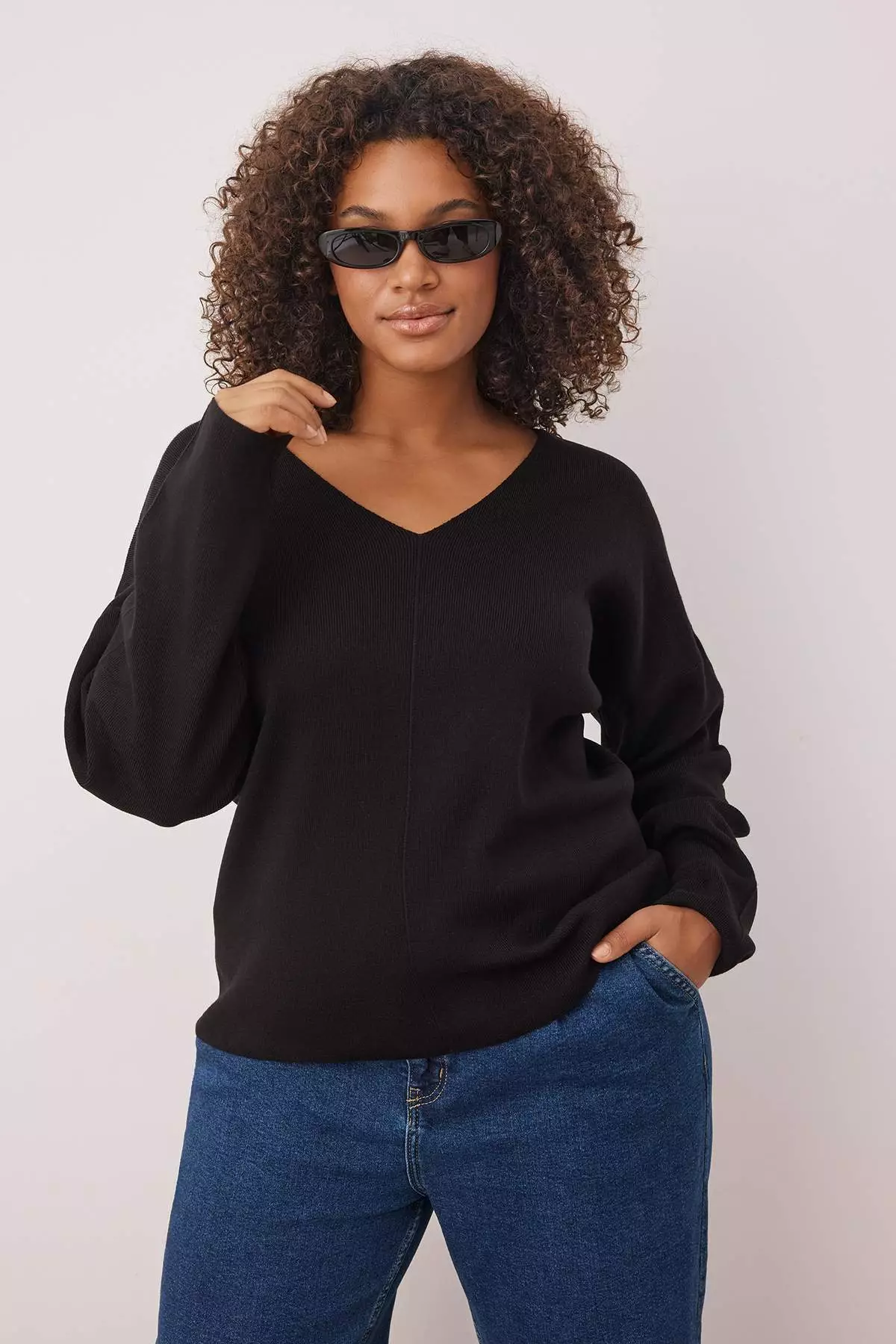 TrendyolBlack V-Neck Thin Knit Sweater Tbbaw26An00002249.00