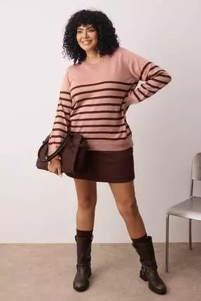 TrendyolBrown-Pink Striped Crew Neck Knitwear Sweater Tbbaw23An00119239.00