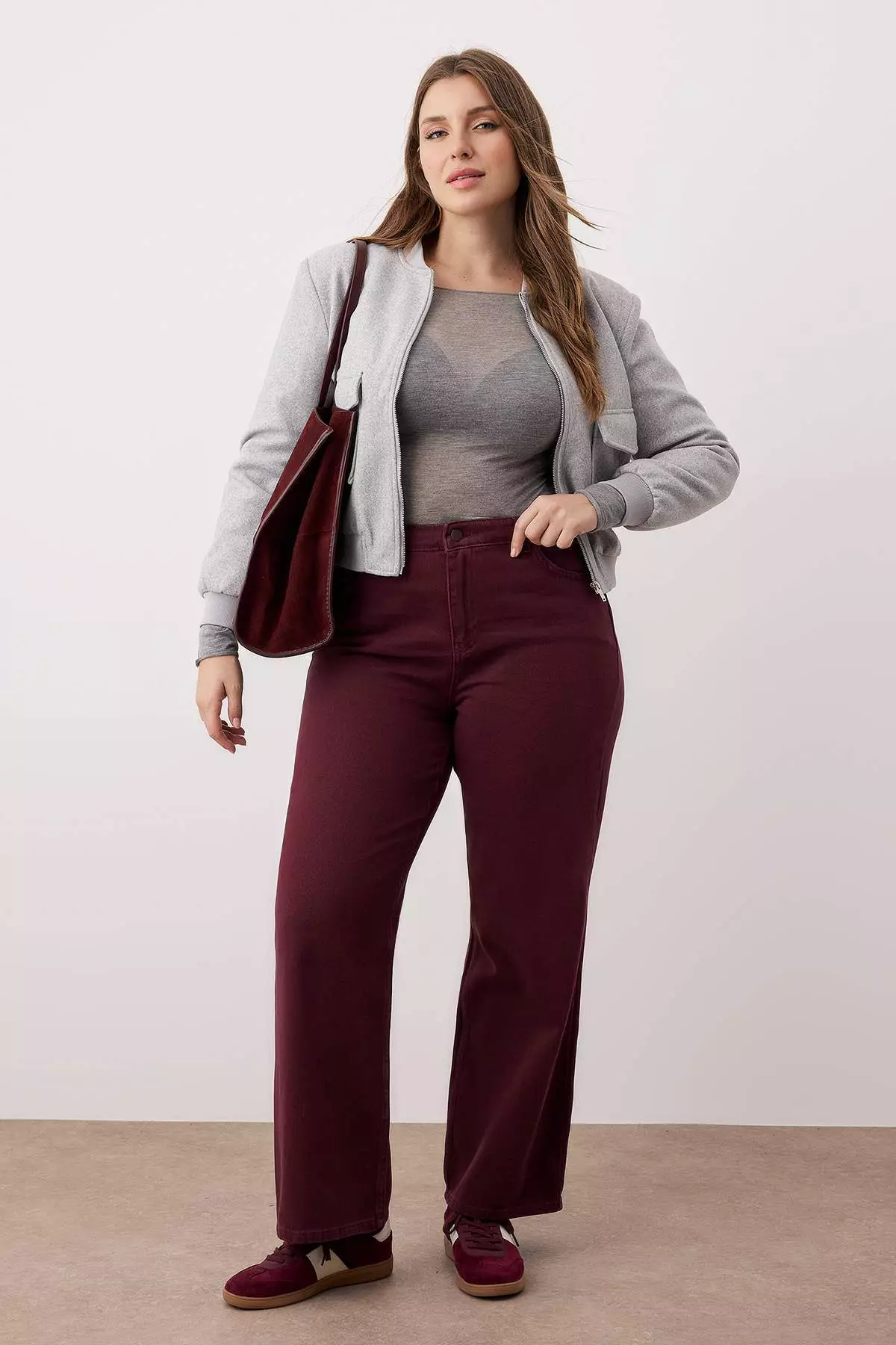 TrendyolBurgundy High Waist Wide Leg Plus Size Wide Leg Jeans369.00