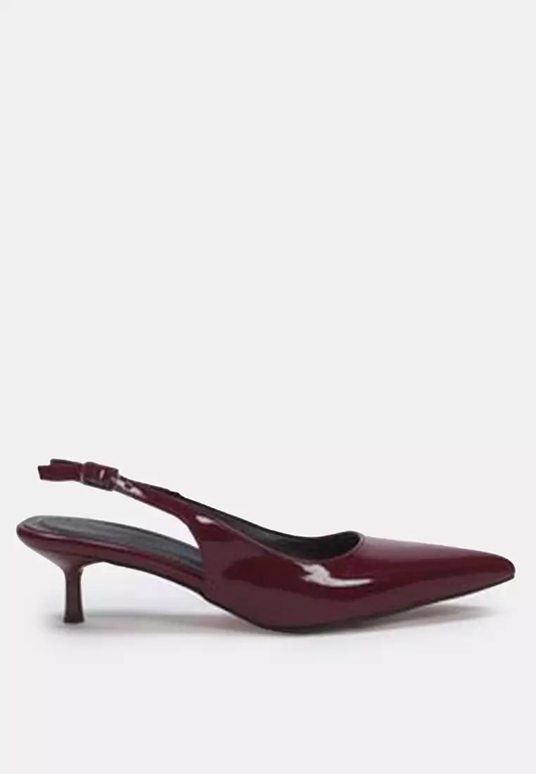 Burgundy Patent Leather Pointed Toe Kitten Heels Women's Classic Heeled Shoes Takss25To00005