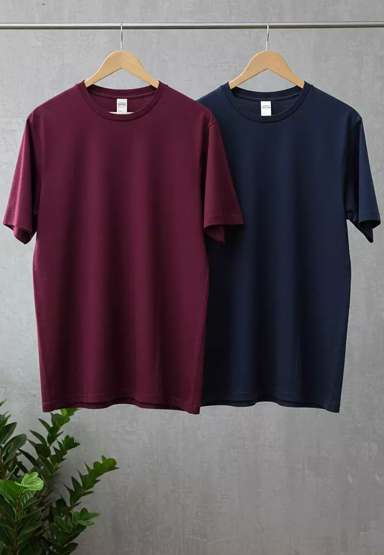 Claret-Navy Blue Oversize 2-Pack Basic 100% Cotton T-Shirt TMNSS24TS00038