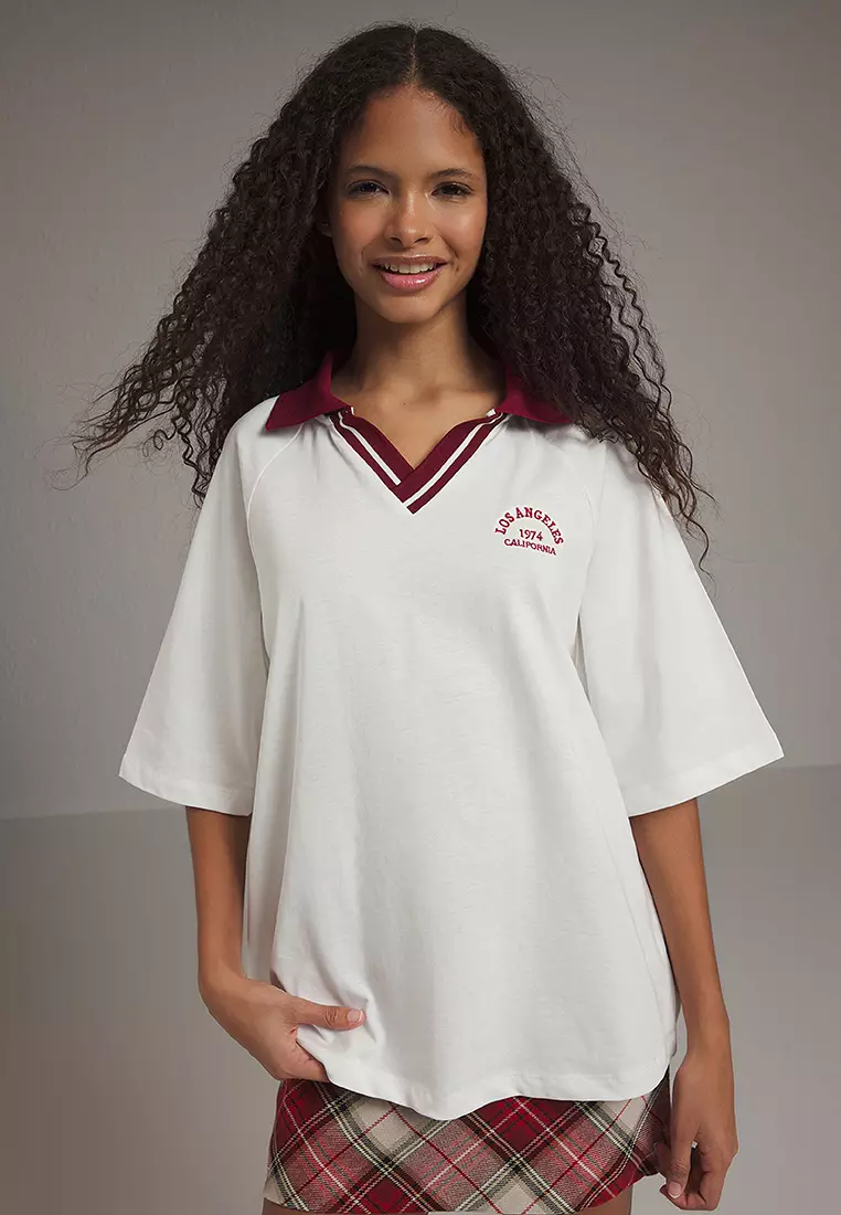 TrendyolEcru Knitwear Band Detailed Embroidered Oversize/Wide Pattern Knitted T-Shirt TWOSS25TS00100199.00