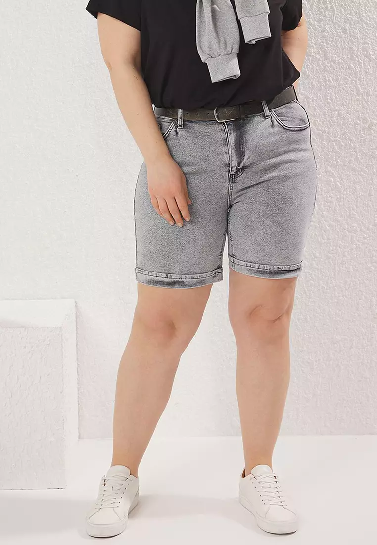 TrendyolGrey High Waist Elastic Waist Denim Plus Size Shorts TBBSS25AP00021279.00