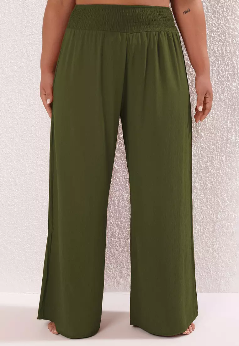 TrendyolKhaki Wide Leg High Waist Beach Wear Plus Size Pants Tbbss25Ar00000259.00