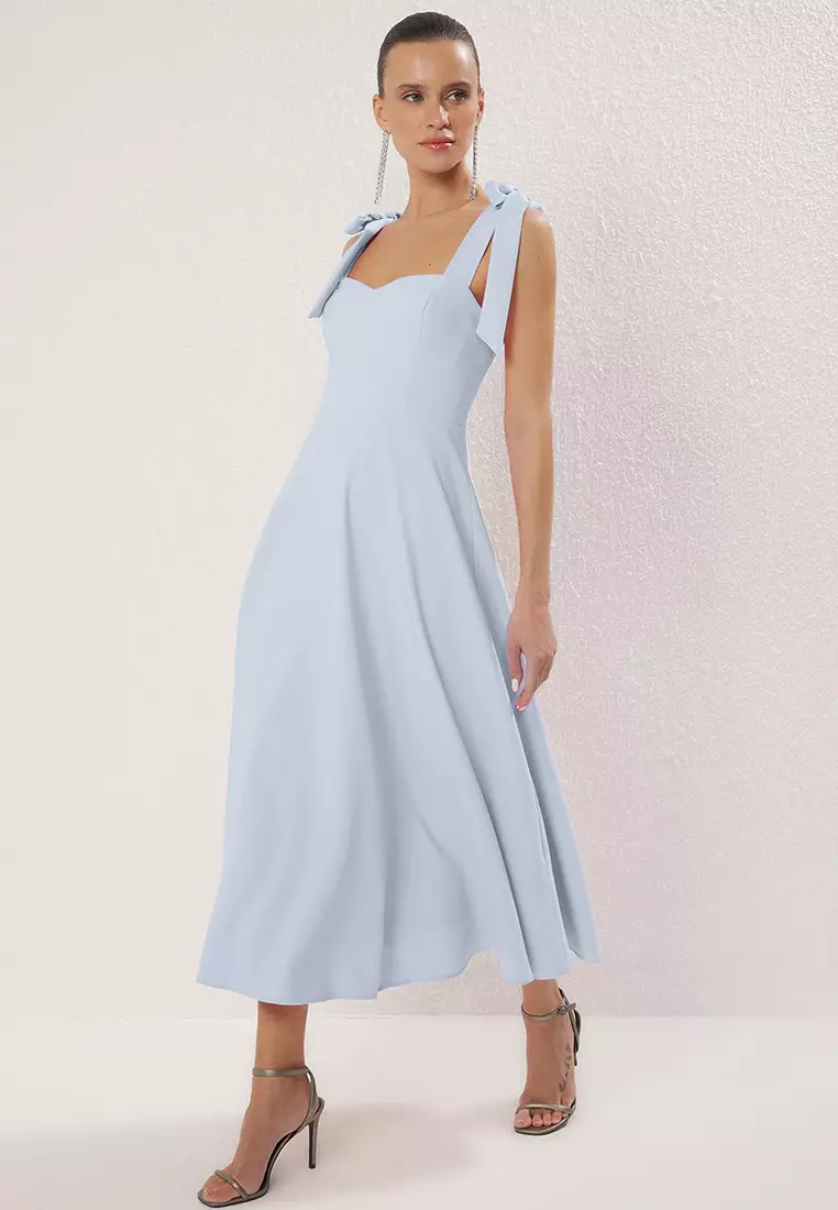 TrendyolLight Blue A Cut Strap Fastening Detailed Midi Elegant Evening Dresses Evening Graduation Dress309.00