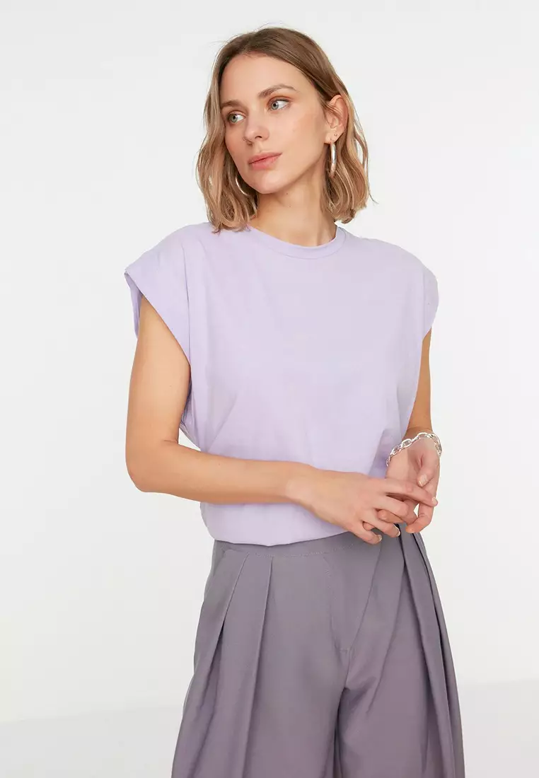 TrendyolLilac 100% Cotton Wadding Look Basic Crew Neck Knitted T-Shirt TWOSS20TS002199.00