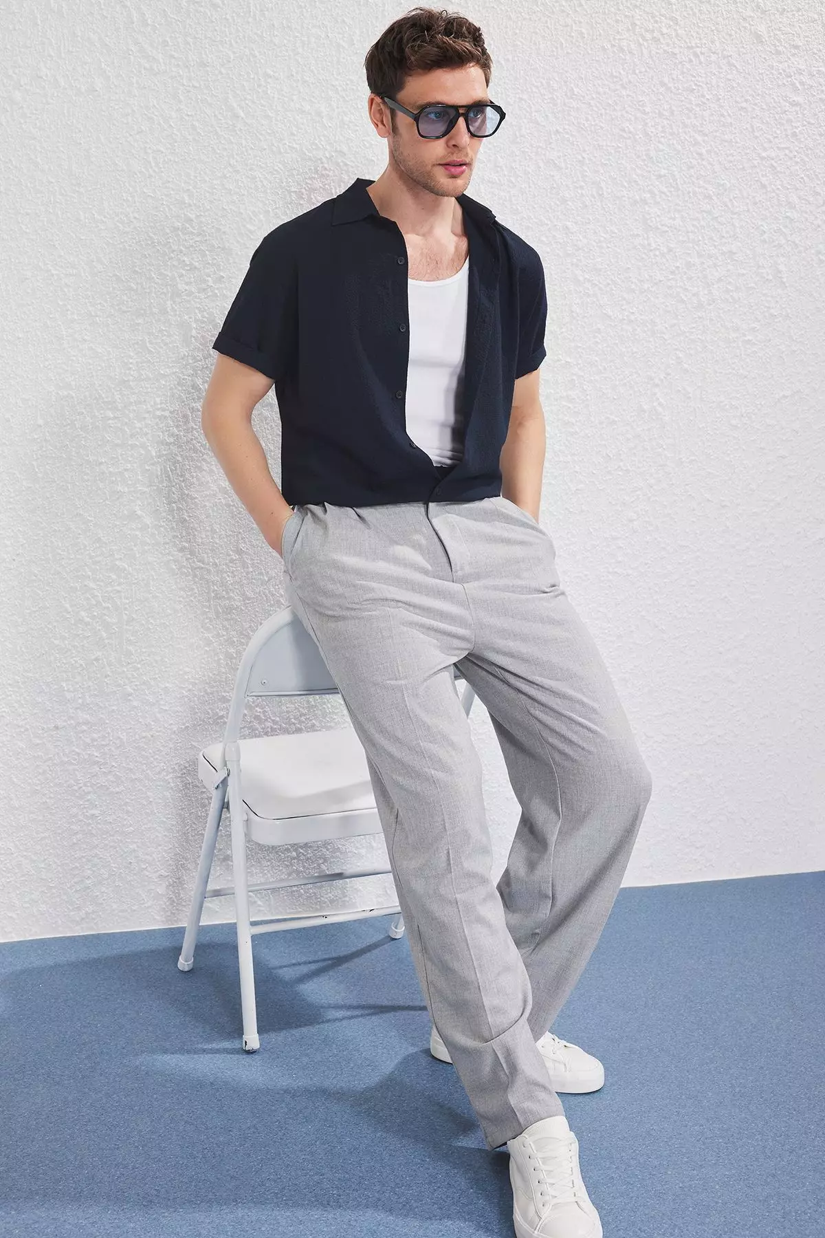 TrendyolNavy Blue Regular Fit Textured Loose Casual Men's Shirt TMNSS25GO00076189.00
