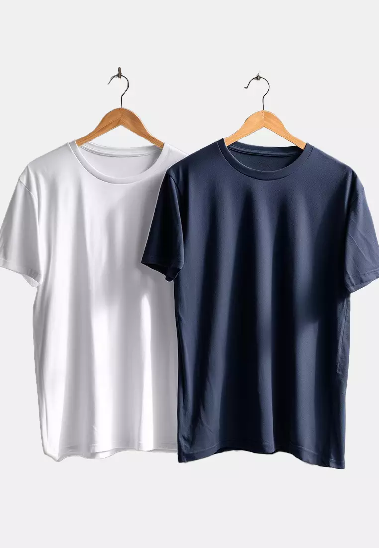Navy Blue-White Oversize 2-Pack Basic 100% Cotton T-Shirt TMNSS24TS00038