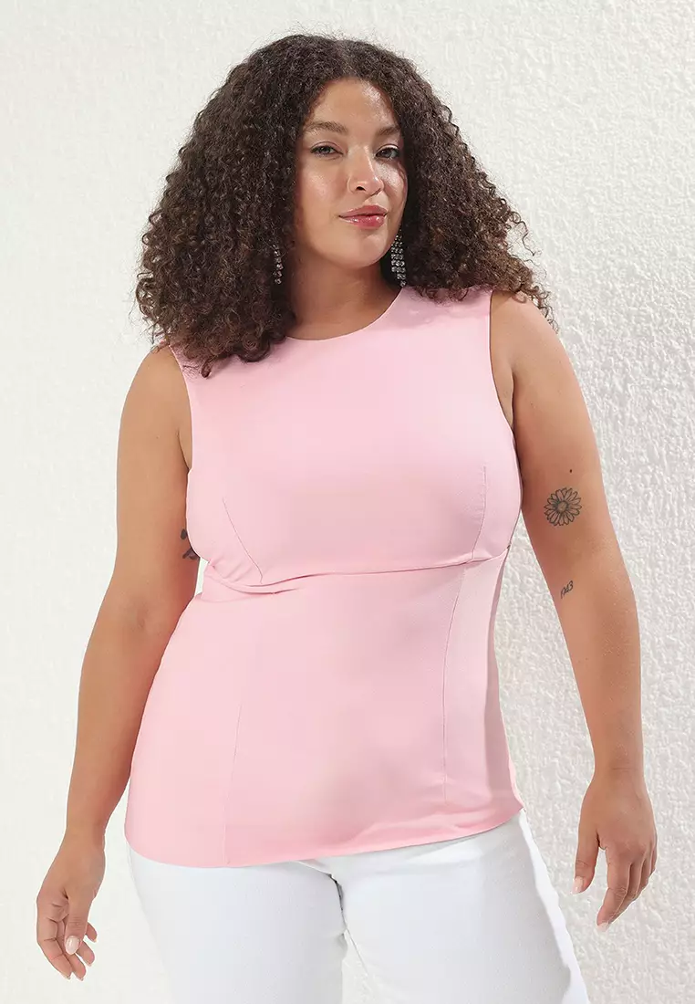 TrendyolPink Sleeveless Backless Bowknot Stylish Woven Plus Size Blouse TBBSS25AF00089269.00