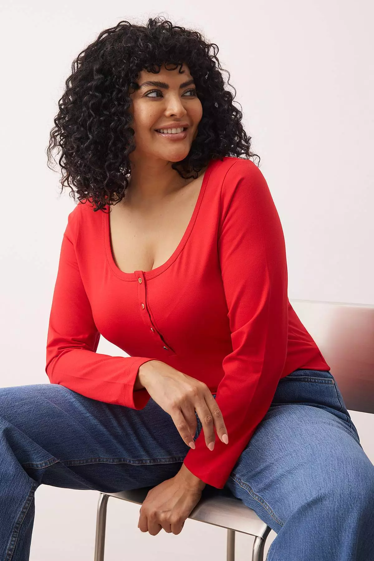 Red Knitted Body Fitting Button Detail Plus Size Blouse Tbbaw26Af00008