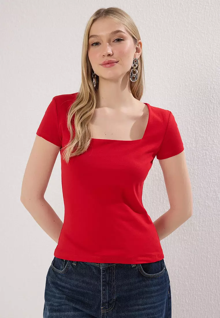 TrendyolRed Square Neck Fitted/Body-Smoothing Knitted Blouse Twoss25Bz00378 Knitted Blouse Twoss25Bz00378109.00