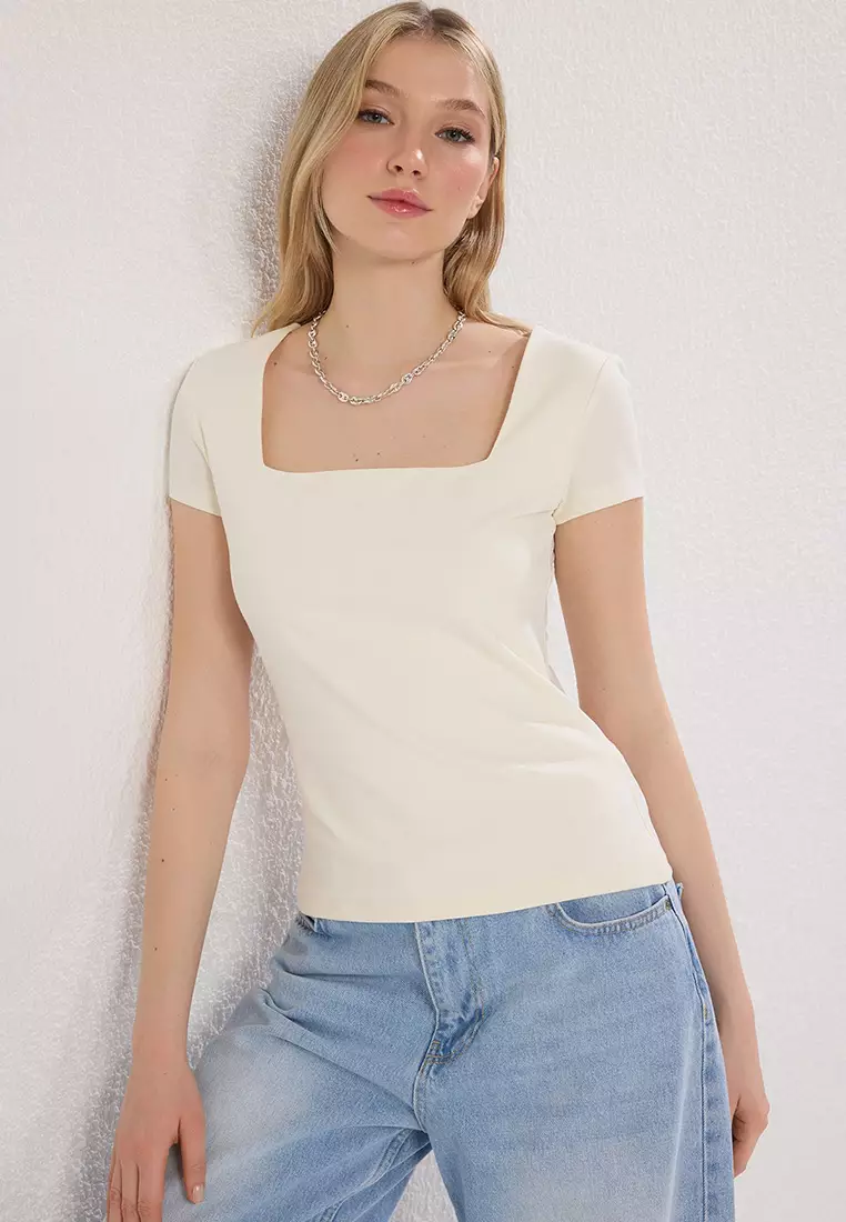 TrendyolStone Square Collar Fitted/Body-Smoothing Knitted Blouse Twoss25Bz00378 Knitted Blouse Twoss25Bz0037899.00