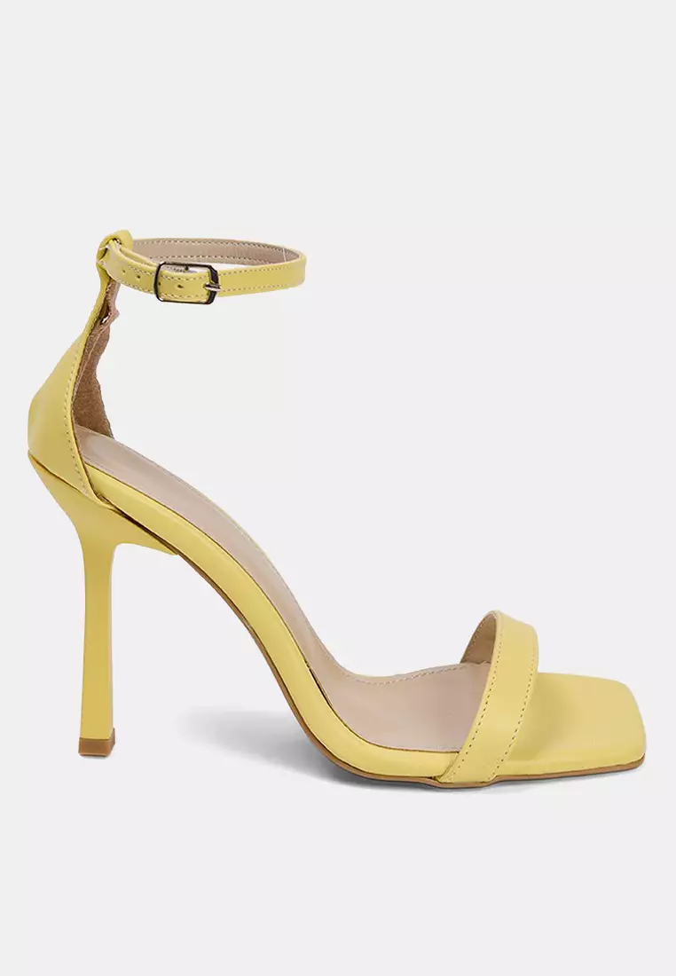 Yellow Ankle Strap Women's Thin Heeled Shoes Takss25To00097