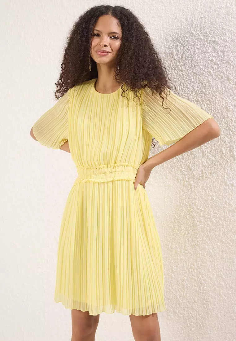 TrendyolYellow Pleated Mini Chiffon Lining Woven Dress Twoss25El00119489.00